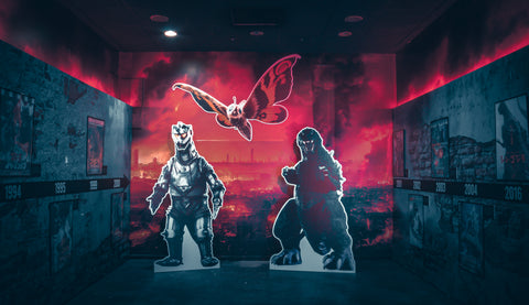 Inside, the interior space looks like a lab overtaken by kaiju-scale chaos. Debris lines the area, lighting cues heighten the tension, and each corner is built for fun and exploration. A poster gallery revisits Godzilla films dating back to 1954, while the City Smash photo set encourages guests to unleash their inner monster in a controlled destruction scene. Claw machines and capsule toy dispensers expand the arcade-style atmosphere.