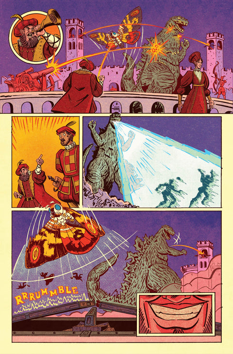 Each one-shot also includes a five-page backup story by Tom Scioli. For the debut issue, that backup pairs Godzilla with another literary icon in Robin Hood and the Monster of Nottingham, giving Sherwood Forest the Monsterpiece Theatre treatment. Scioli describes the backups as the “dessert and coffee” at the end of each issue, explaining that Godzilla Meets Robin Hood and His Merry Band of Outlaws is an ongoing feature made up of “self-contained minisodes” that combine into a larger epic. “I’ve been working really hard on it,” Scioli says. “Get ready to explore exciting new and old territory Godzilla’s never gone before.”