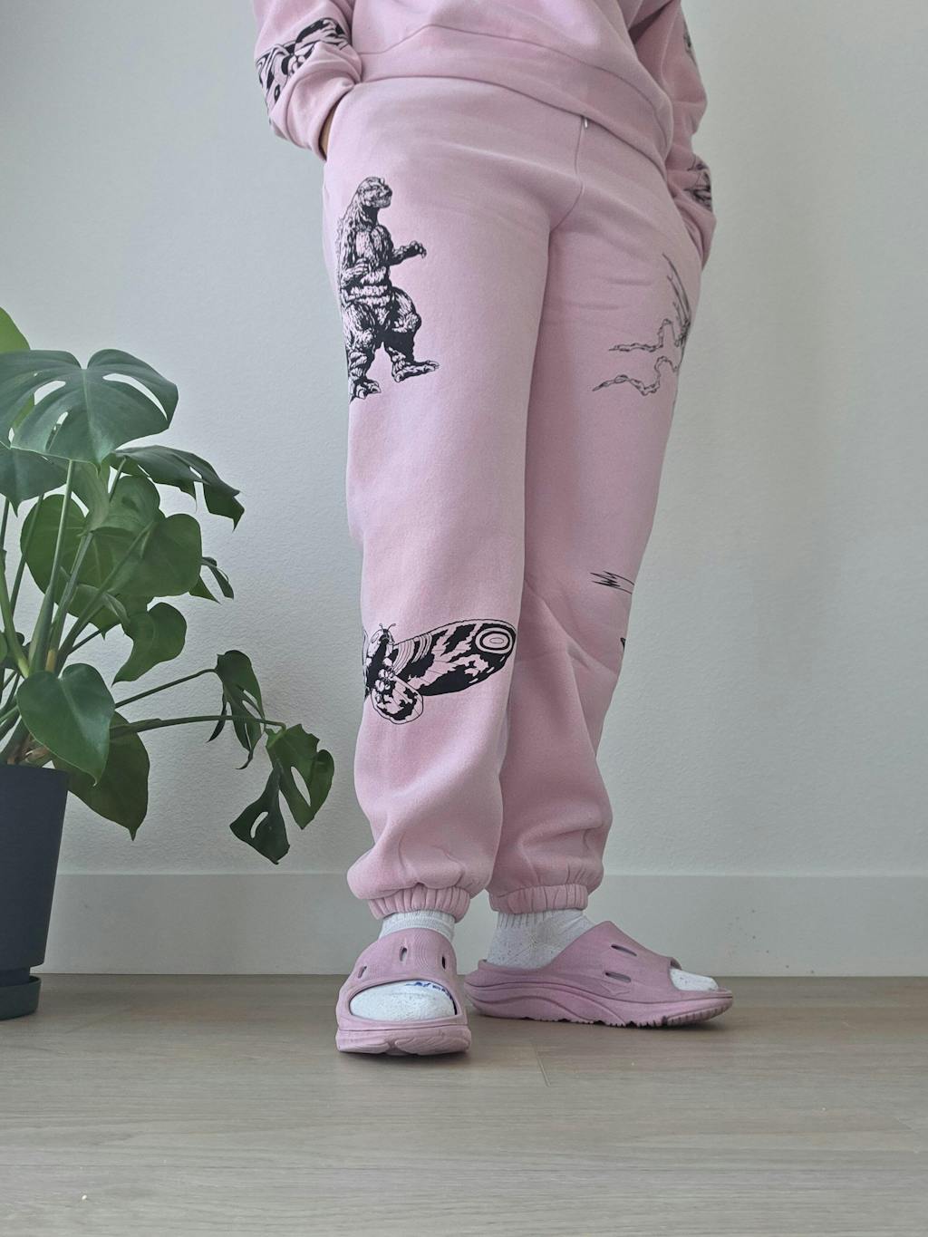 Kaiju-coded comfort has arrived with the Orchid Godzilla Kaiju Print Sweatpants.