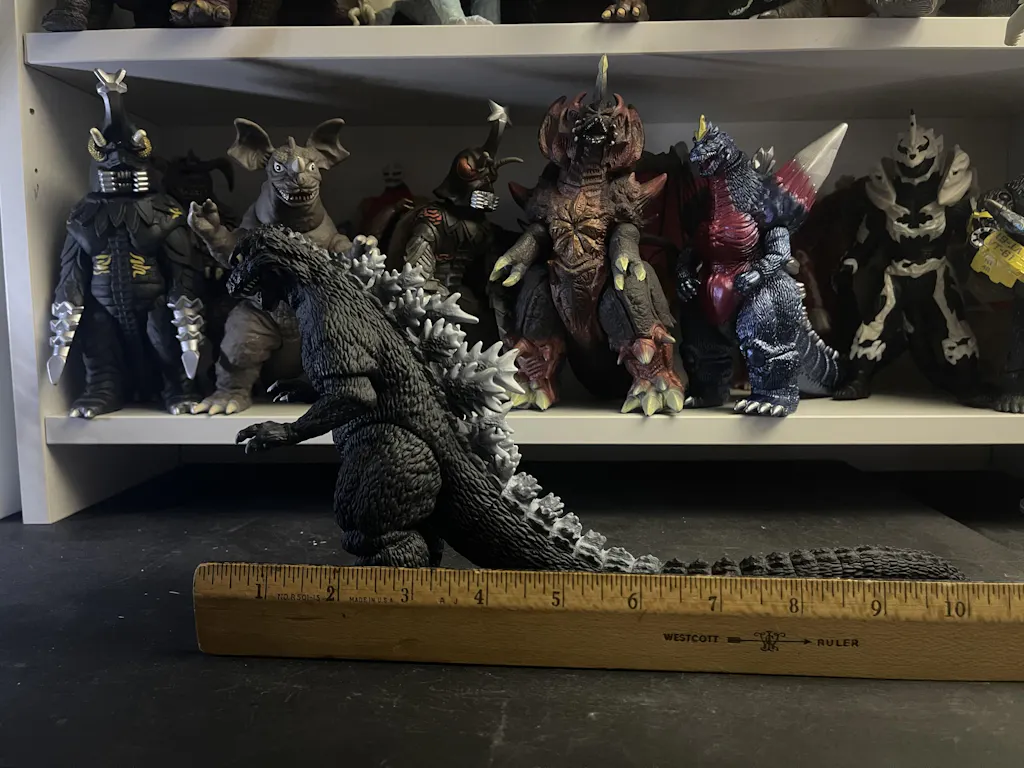 Sculpted with classic proportions and signature dorsal plates, this soft vinyl figure captures the imposing stance and texture of the 1984 design. A standout variant for collectors, it brings a unique edge to any Movie Monster Series display.